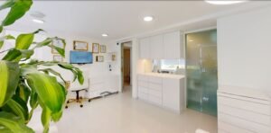 El proyecto consiste en la adecuación de un piso de 300 m² originalmente destinado a oficinas, el cual fue reconvertido en una clínica de belleza estética. El nuevo programa incluye una recepción, consultorios médicos, cabinas de masaje, farmacia, salón de usos múltiples y una sala de juntas, articulados de manera funcional y fluida.
