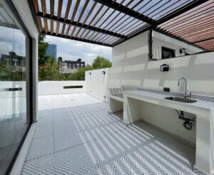 Ubicado en un edificio del periodo porfiriano en el corazón de la Colonia Juárez, este proyecto consistió en la remodelación integral de un apartamento de 80 m², complementado con un roof garden privado.
